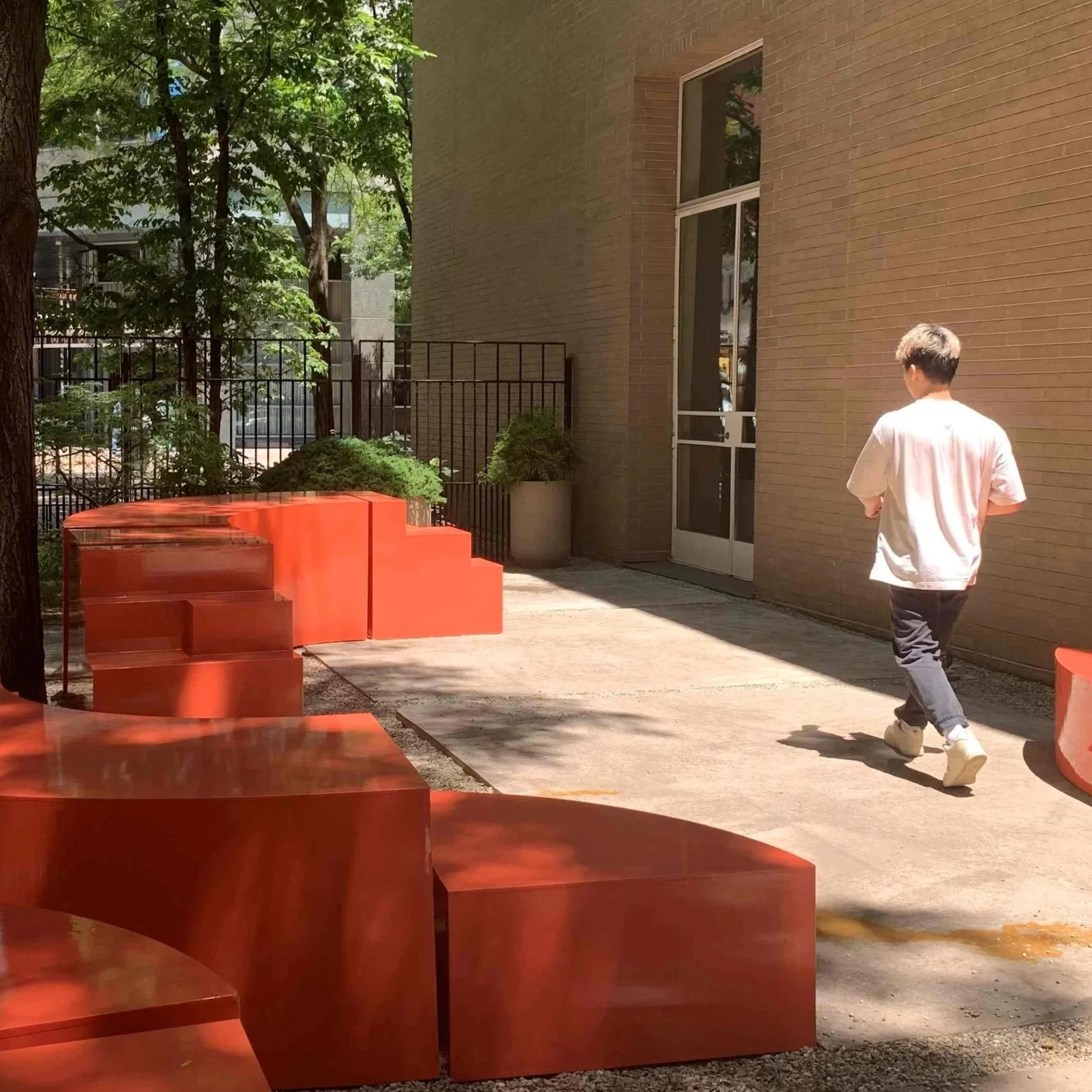 In this time of tentative gatherings, Mobile Makers designed configurable furniture for The Arts Club of Chicago Garden. Employing modular, geometric forms in bright color, they transformed the tranquil setting into a playful, interactive space. Each practical, moveable shape is designed to be used independently or in combination with others to make individual seating, playforms, or benches. Throughout the exhibition's run, The Arts Club hosted outdoor sound and performance, as well as open hours for meditation or social gathering.